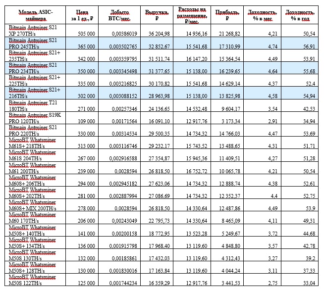 Несмотря на то, что доходность большинства моделей сократилась на 0,6–0,8 п.п., это не падение, а естественное выравнивание в условиях роста сложности сети. Для инвестора это означает большую прогнозируемость и возможность точнее рассчитывать рентабельность вложений. При этом даже более доступные модели, такие как MicroBT Whatsminer M50S 122 TH/s, демонстрируют до 33% годовых, оставаясь привлекательными для малого и среднего бизнеса.